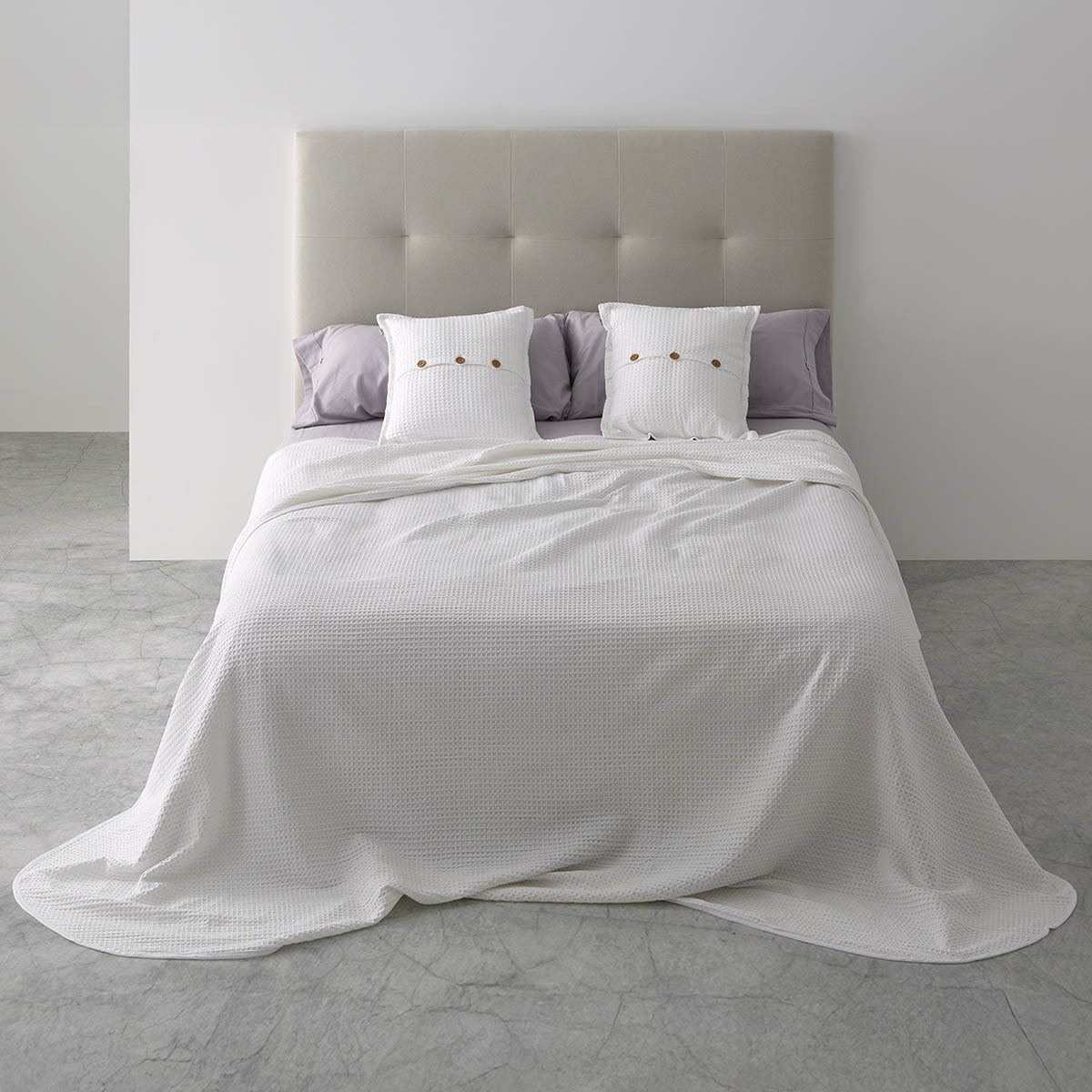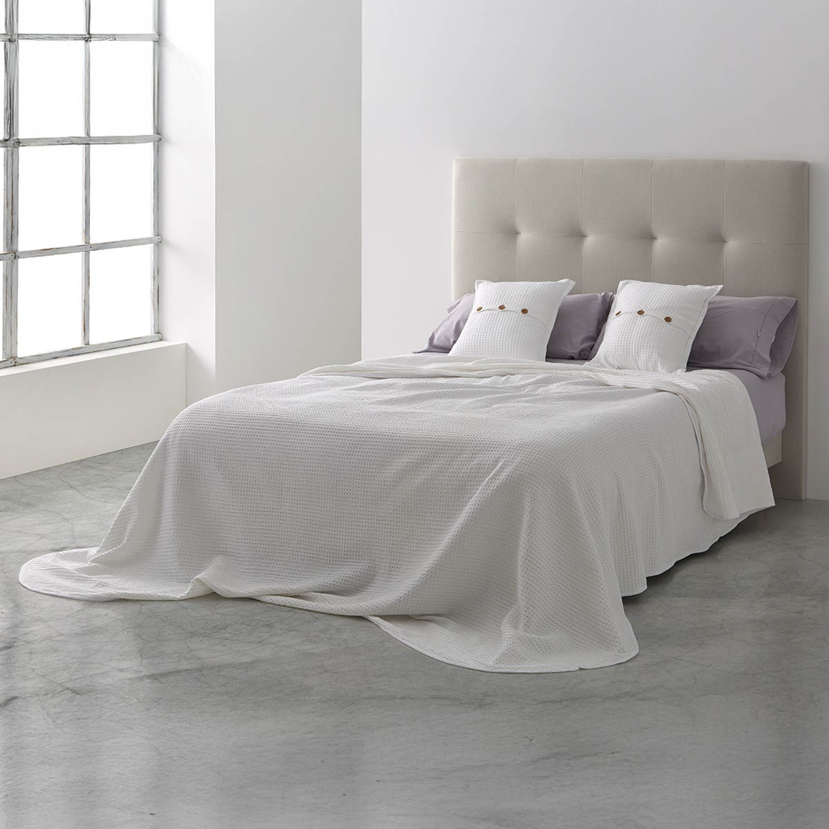 La Colcha de algodón Banús Blanco está disponible en tallas que van desde cama 90 hasta 180, asegurando un ajuste perfecto para cualquier tamaño de cama.