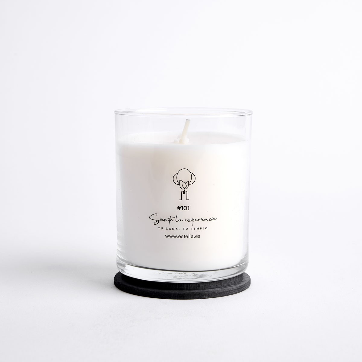 Vela de 200 gr con la fragancia 101 diseñada por Estelia y presentada con una tapa perfecta para conservar la fragancia.