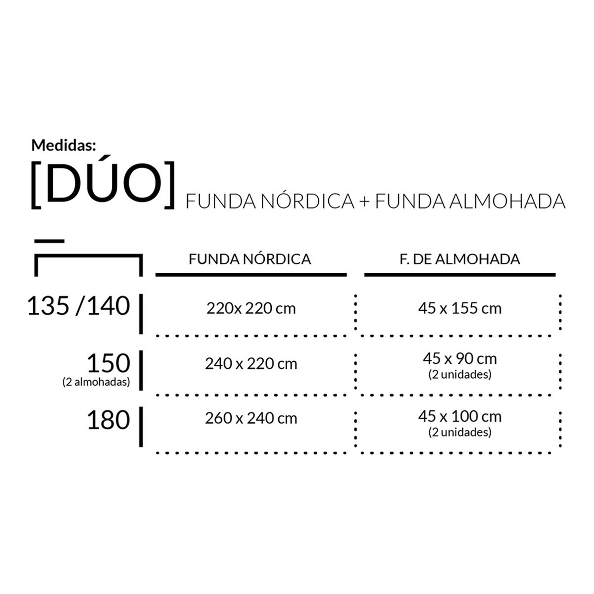 | Cama | Funda nórdica | Funda(s) de almohada |