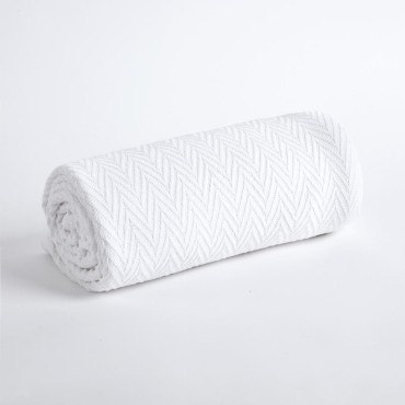 Plaid Arona 100% algodón – disponible en blanco, crudo y azul. Tamaño 140x190 cm. Ideal para dar calidez y estilo al sofá o la cama.