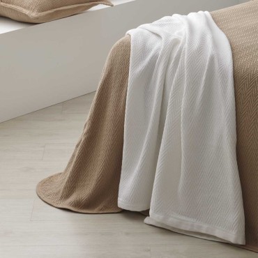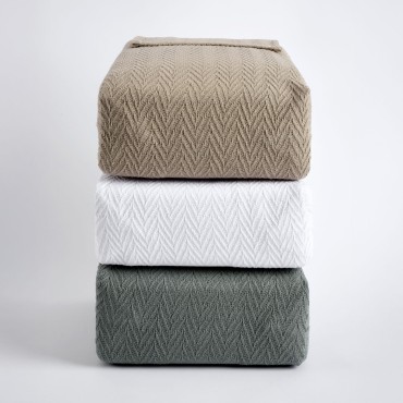 El plaid Adra de Estelia combina diseño y confort con un tejido en espiga 100% algodón. Suave, ligero y disponible en tres colores naturales —verde, blanco y piedra— para dar un toque elegante a tu cama o sofá.