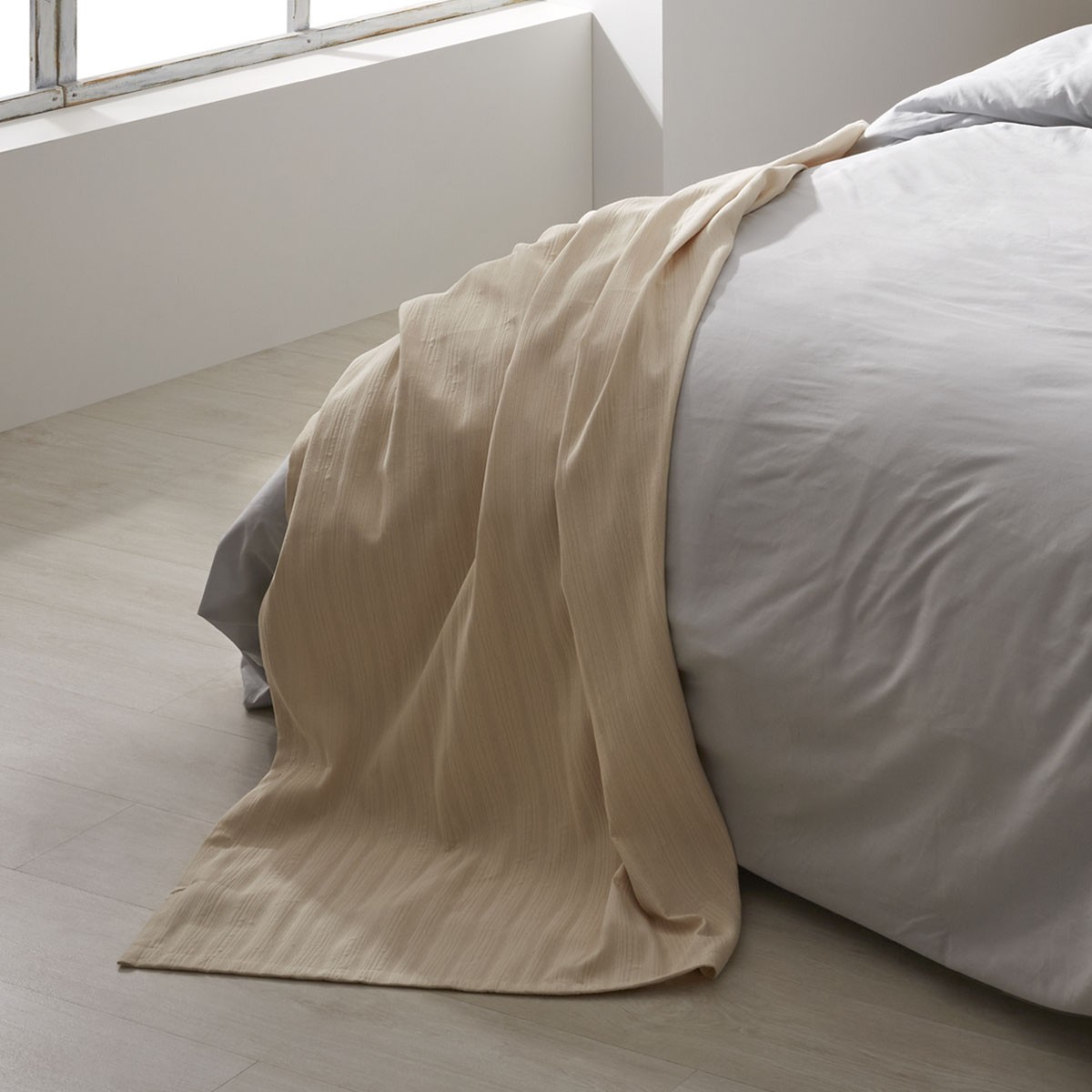Plaid Arona 100% algodón – disponible en blanco, crudo y azul. Tamaño 140x190 cm. Ideal para dar calidez y estilo al sofá o la cama.